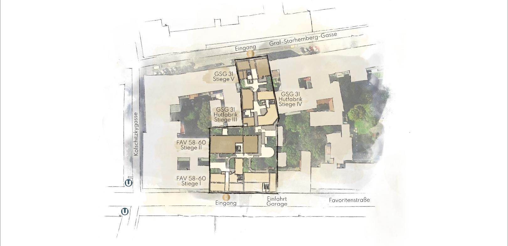 Sie sind der Mittelpunkt einer Novelle. Einer Novelle um ein wunderschönes Projekt zwischen Graf-Starhemberg-Gasse und Favoritenstraße, der wir den Namen Quartier Starhemberg gegeben haben. Auf der ehemaligen Adresse Favoritenstraße 58 befand sich Ende des 19. Jahrhunderts das bekannte „Hotel Südbahn“ und im grünen Innenhof des Quartier Starhembergs stand bis vor 10 Jahren noch eine traditionelle Hutfabrik. Die Inspiration dieser geschichtsträchtigen Bauwerke und die Liebe zum Handwerk stellen die Grundlage für die zeitgemäße Umsetzung unseres Wohnprojektes dar.